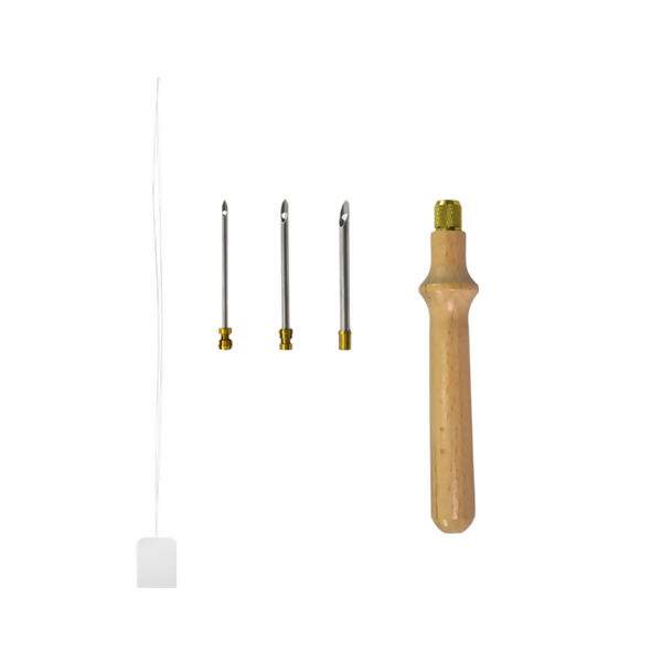 Composto por 3 agulhas de tamanhos variados, base resistente e passador de 20 cm, ele permite explorar diferentes técnicas com facilidade e precisão.