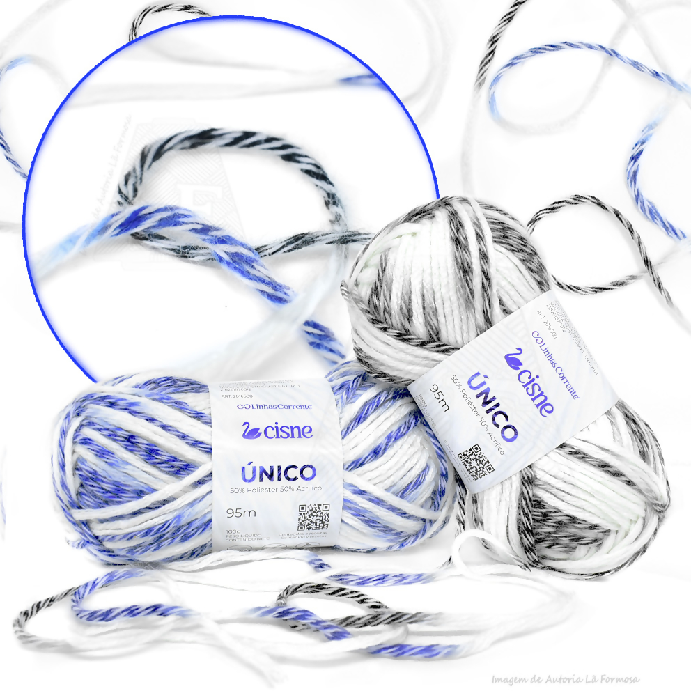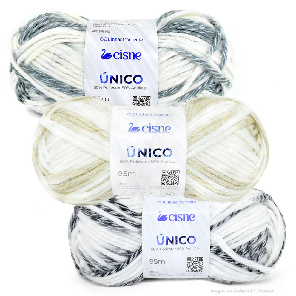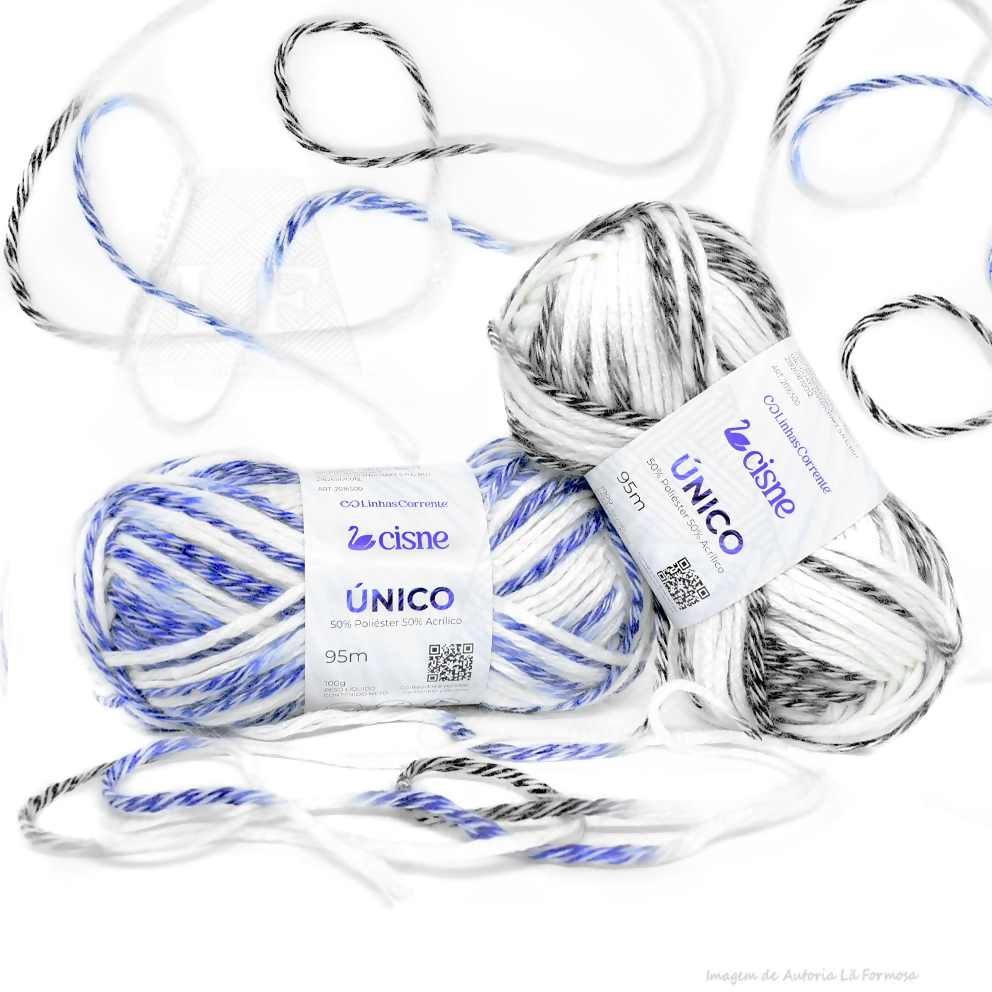 A Lã Único da Cisne oferece combinações encantadoras. Com tons contrastantes e branco, esse fio versátil é ideal para diversas criações.