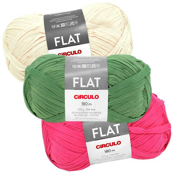 Flat é ideal para a confecção de peças estruturadas e acessórios modernos e cheios de personalidade. Com um efeito diferenciado, o fio dá vida a projetos únicos! Além disso, conta com a tecnologia Easy Pull.