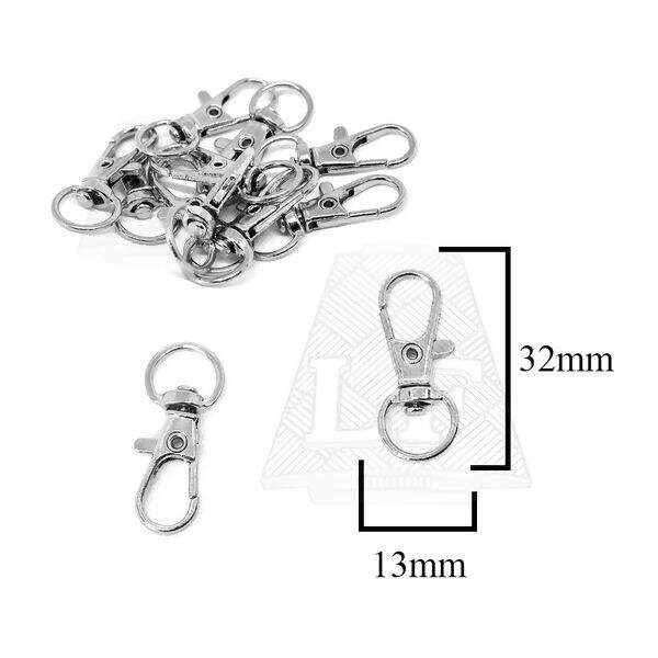 Kit Mosquetão Lagosta Prata - Níquel (32mm) Escolha o Kit: